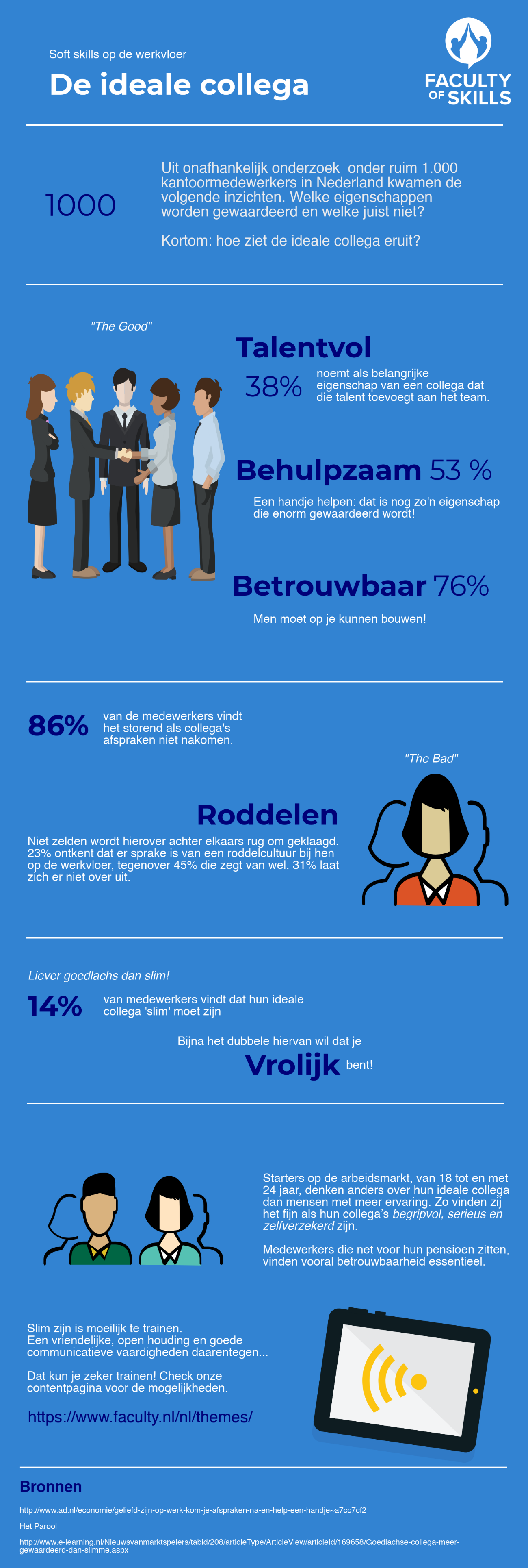 De ideale collega: iedereen heeft hem of haar graag naast zich. Maar hoe ziet de ideale collega eruit? En wat kan hij of zij juist beter niet doen? We vroegen het de Nederlandse kantoormedewerker. Bekijk de resultaten in deze infographic!